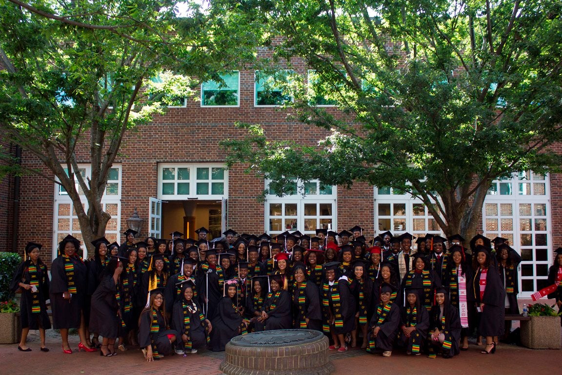 Each semester, The University of Alabama holds Nyansapo, which is a kente robing ceremony for African-American students.