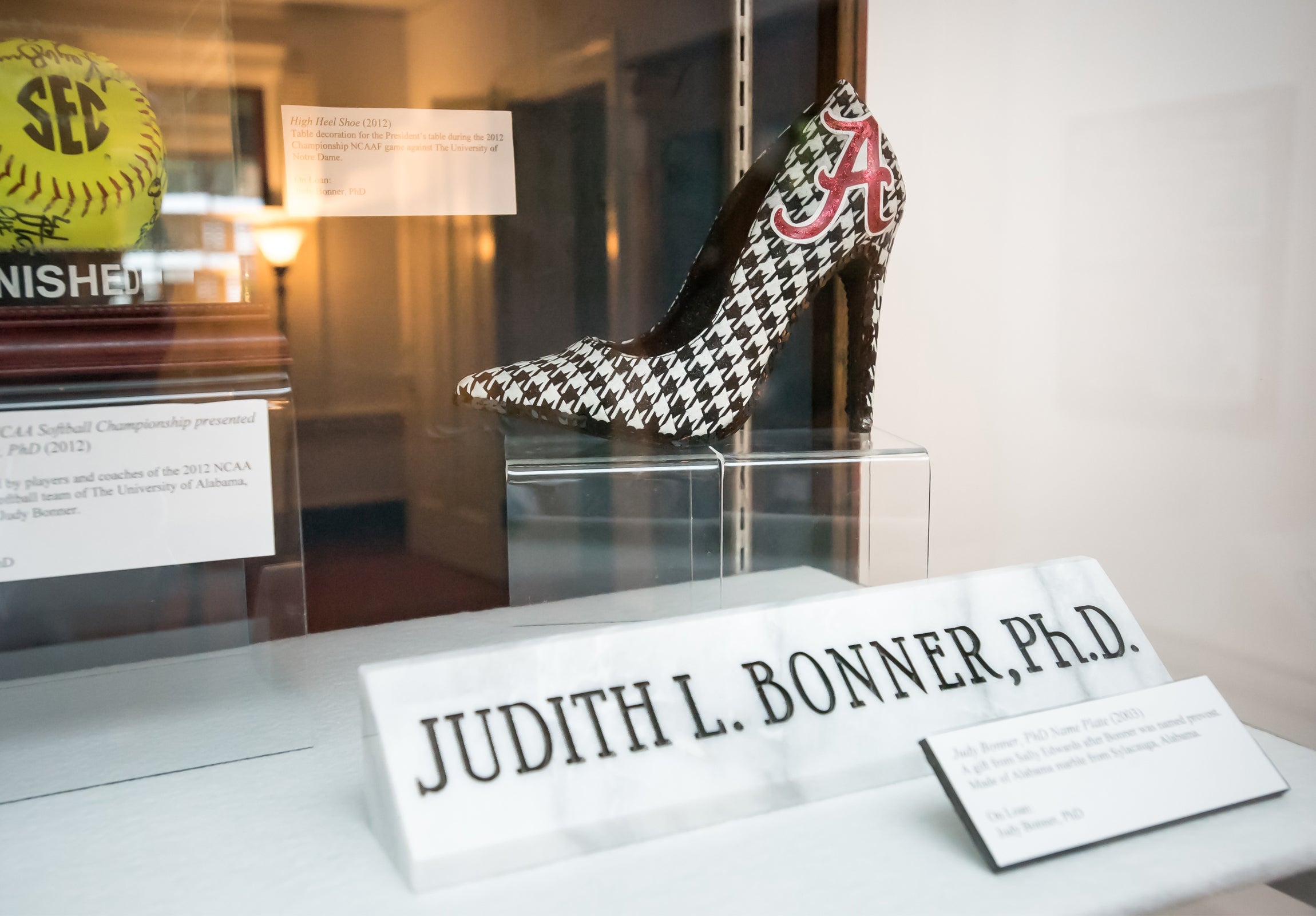Dr. Judy Bonner, UA’s first female president, contributed several items to the exhibit.