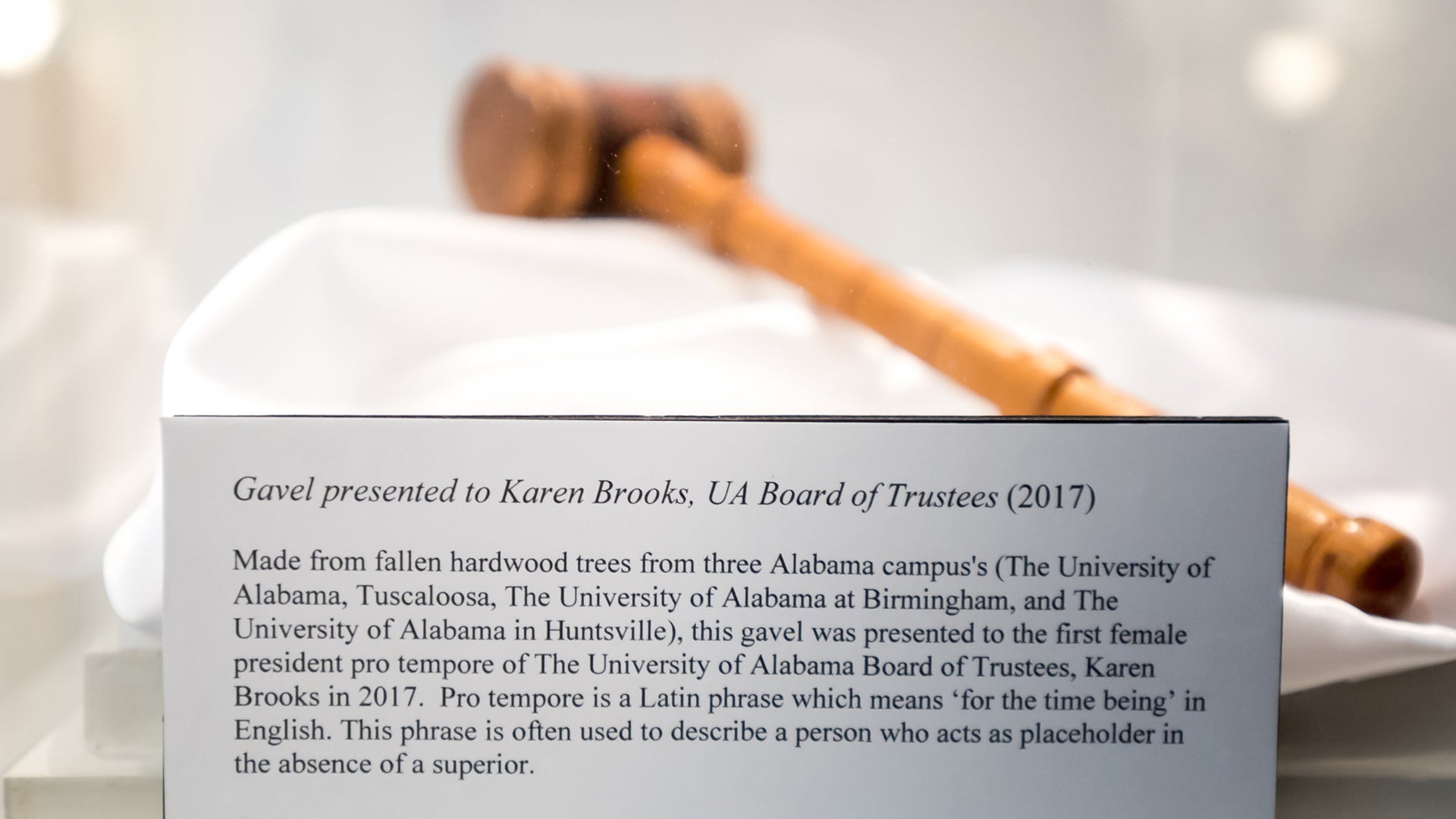 A gavel presented to Karen Brooks, the first female president pro tempore of the UA Board of Trustees.