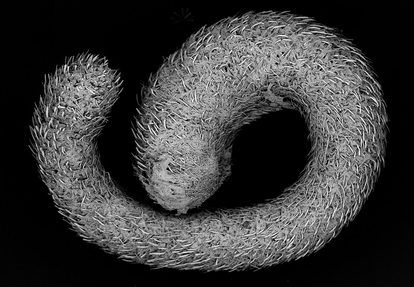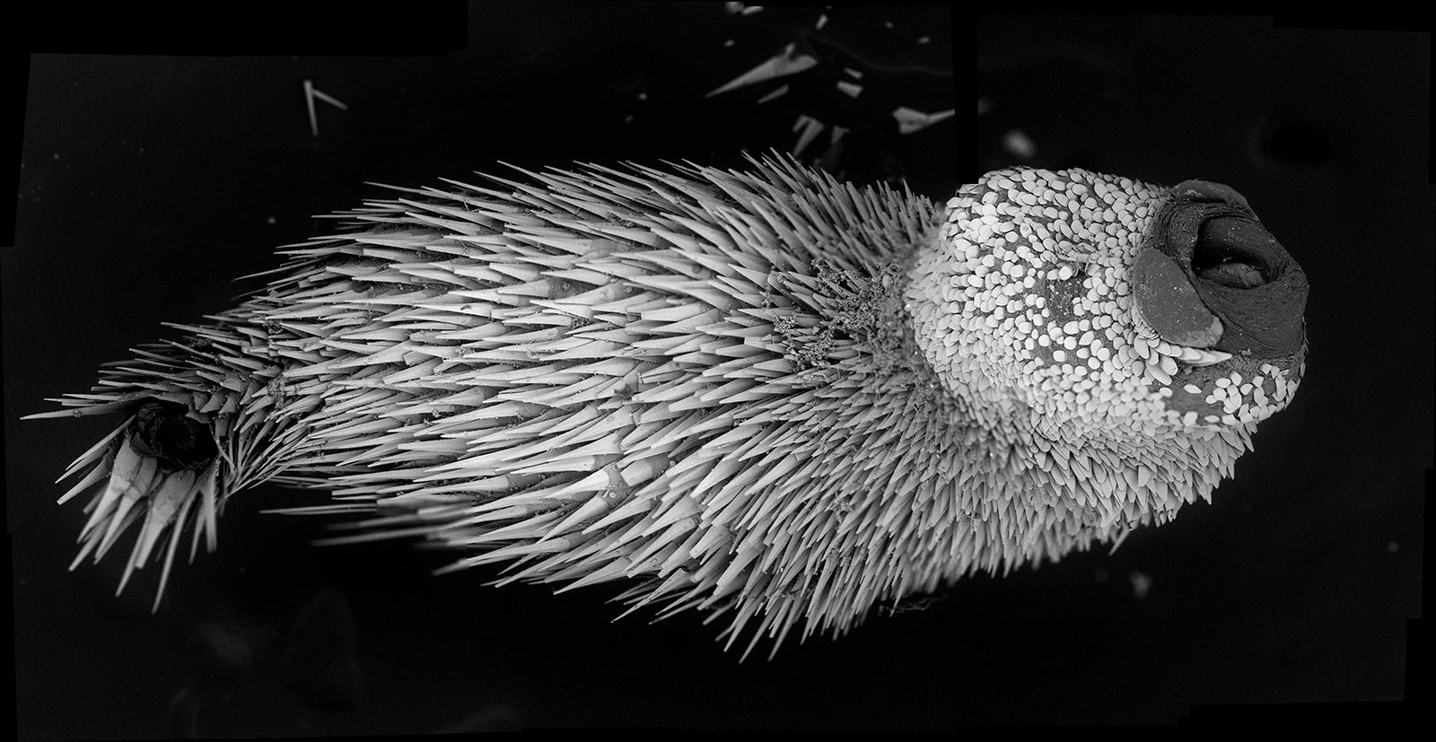 Dr. Kevin Kocot used the high magnification of a scanning electron microscope to examine worm-like mollusks to see fine details of the scales, spines and other structures for specimen identification.