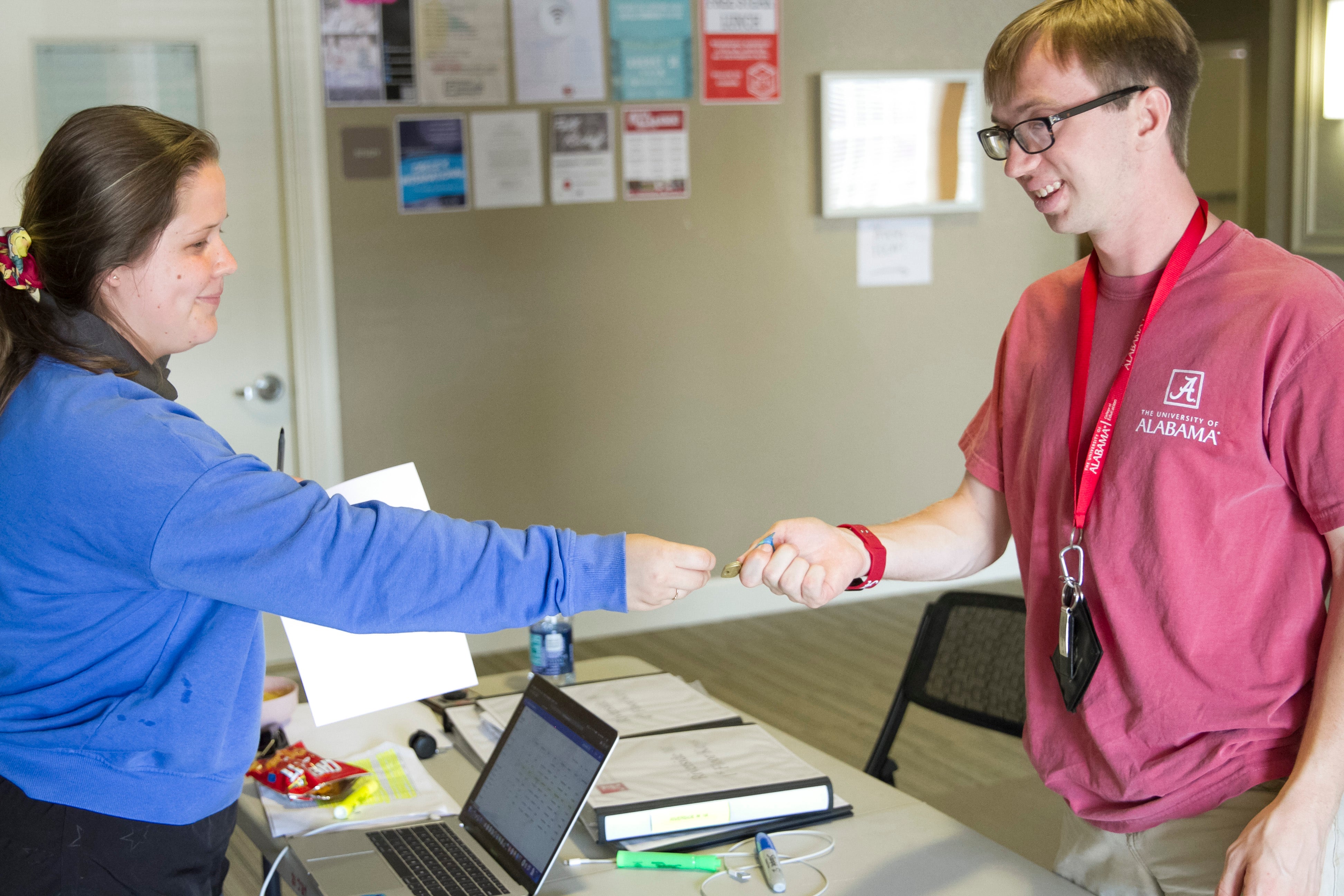 THE KEYS! Colby Spangler, of Birmingham, receives the keys to his on-campus dorm room.