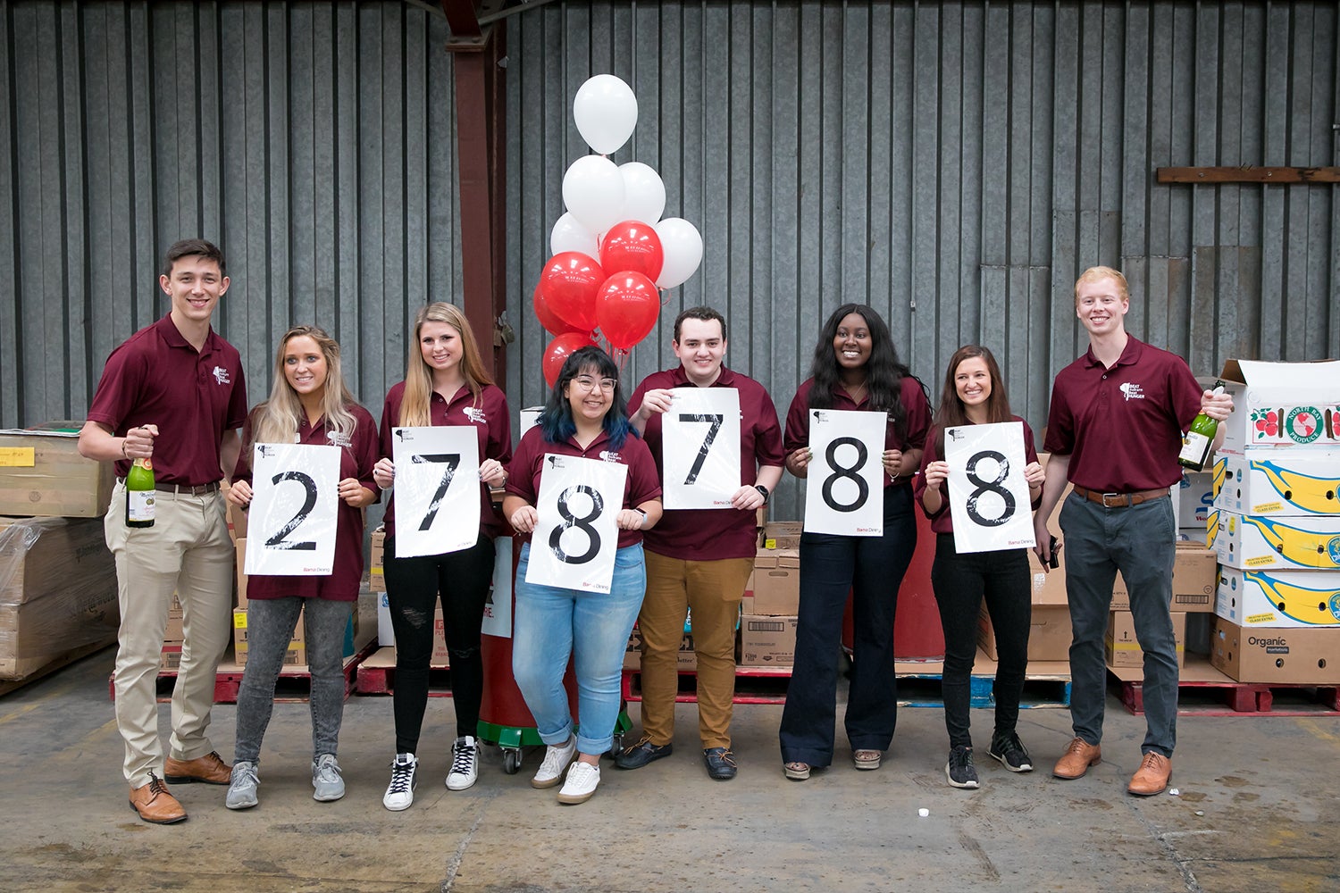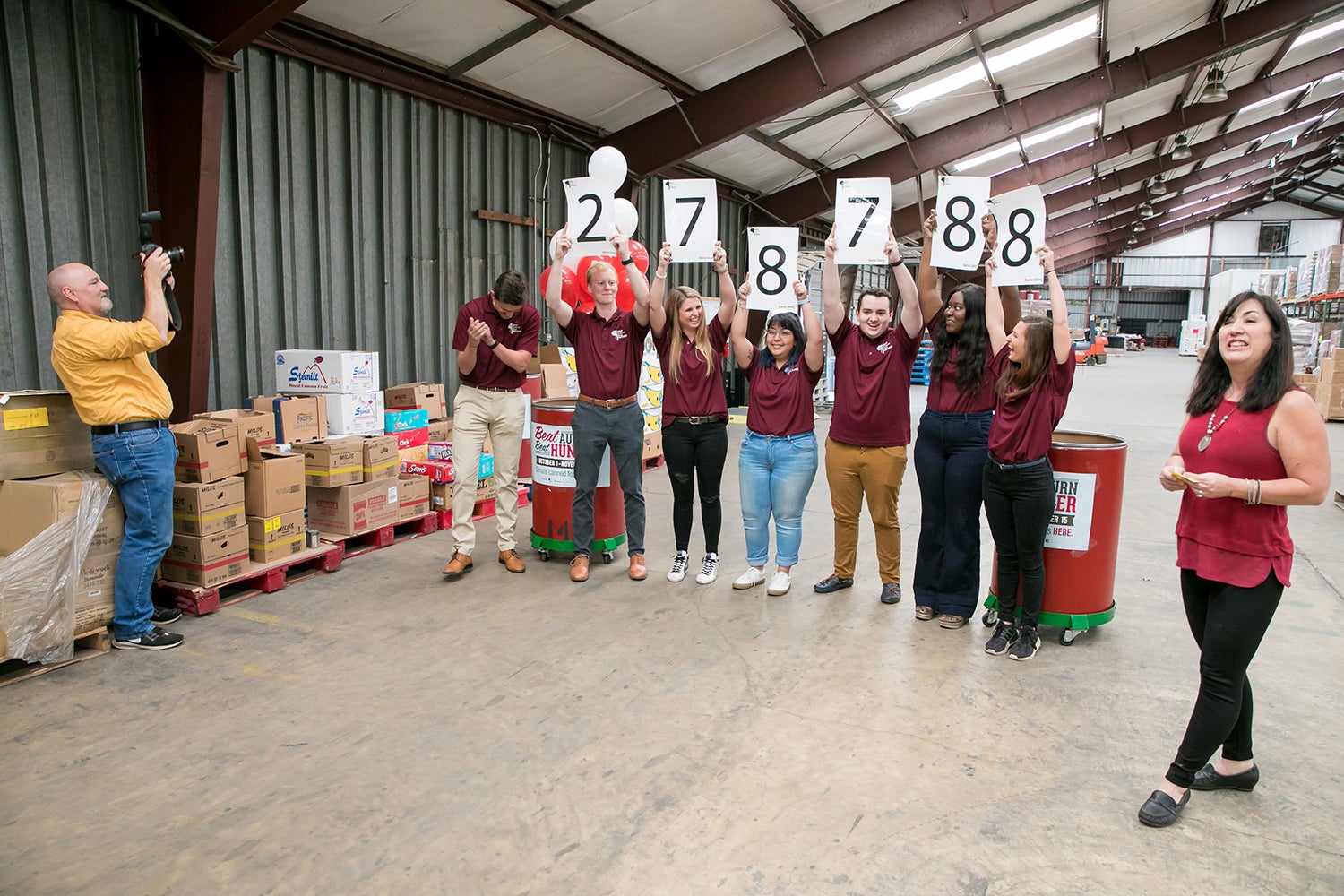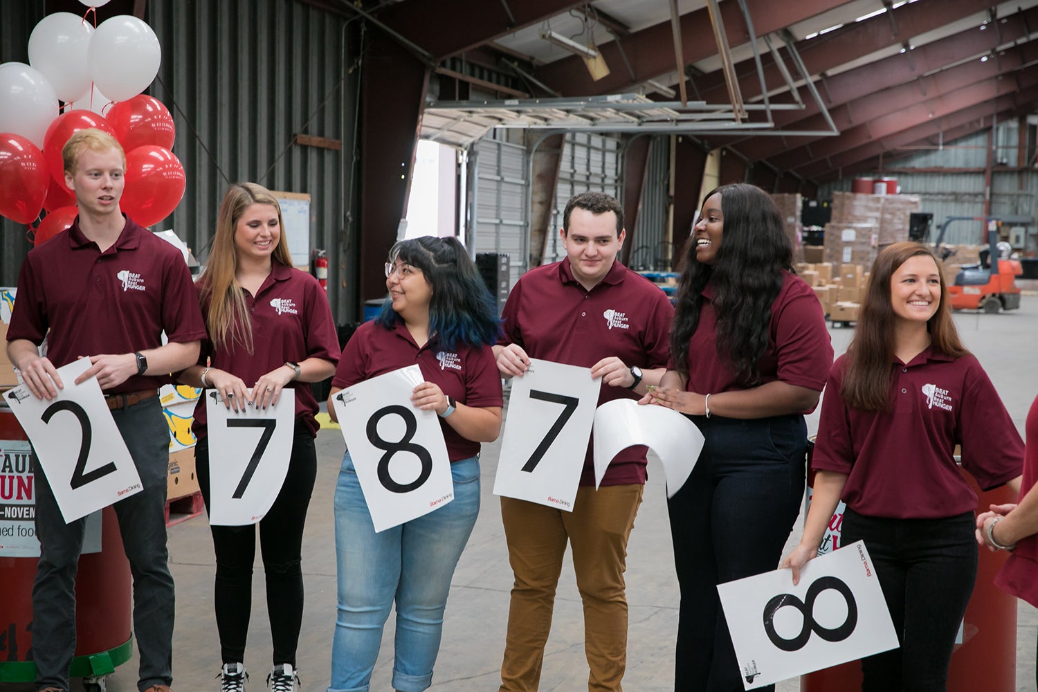 Student staff members of Beat Auburn Beat Hunger reveal the 2019 total using placards.