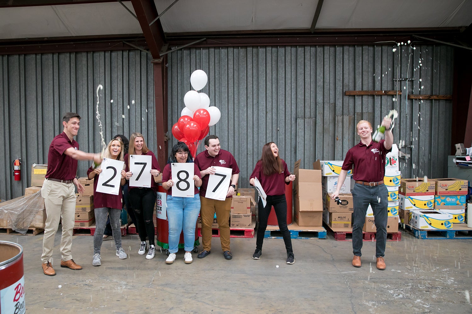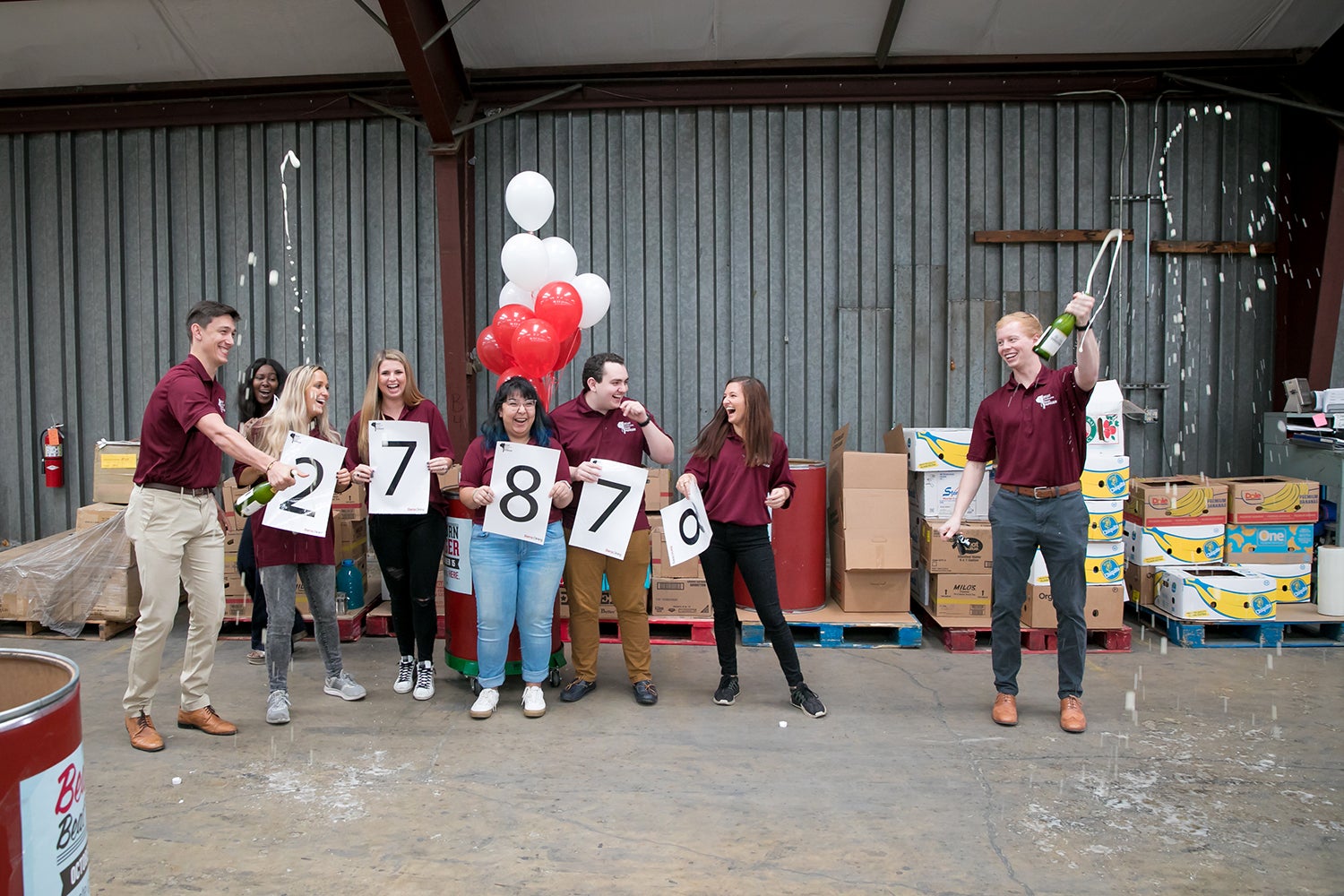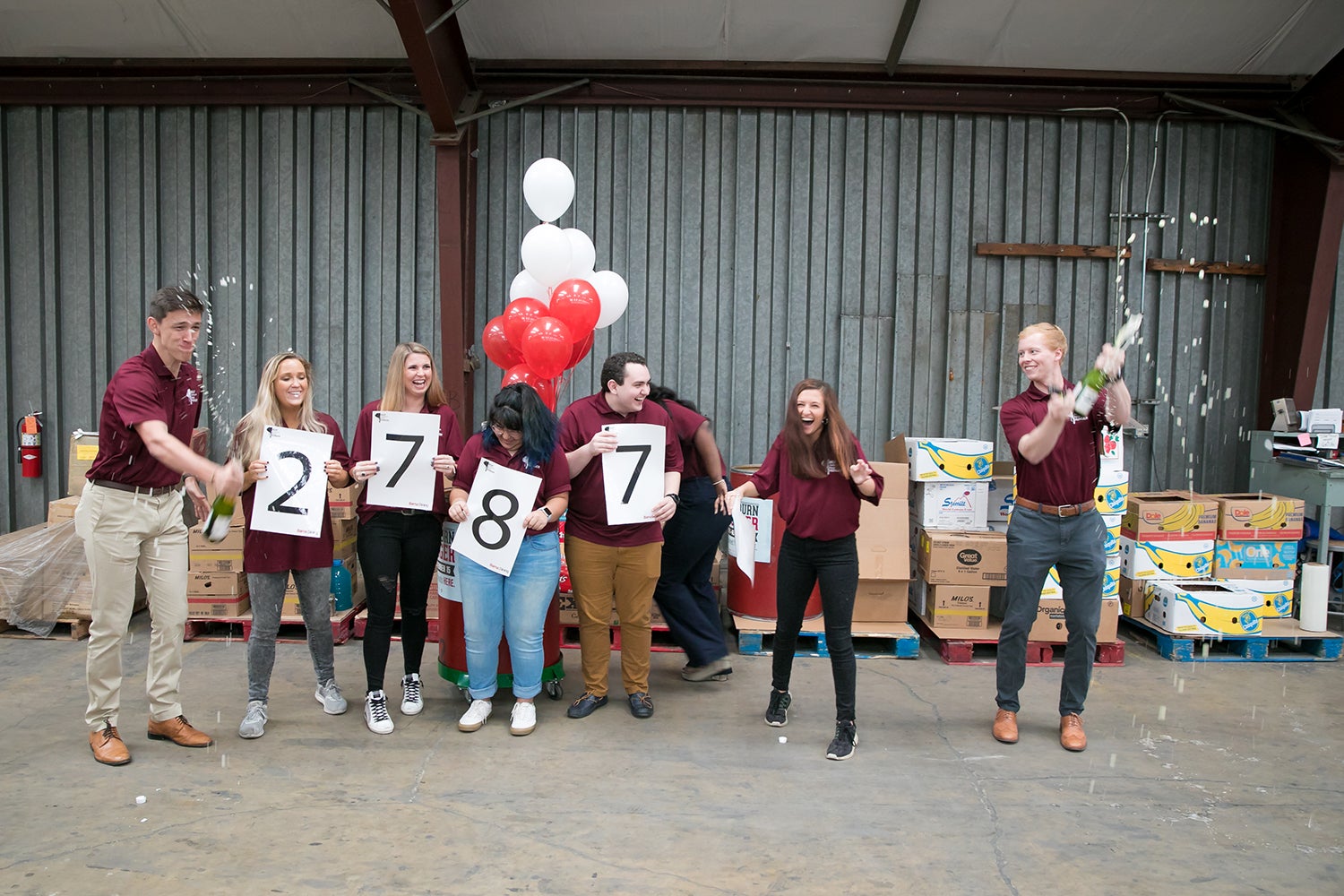 Student staff members of Beat Auburn Beat Hunger reveal the 2019 total using placards.