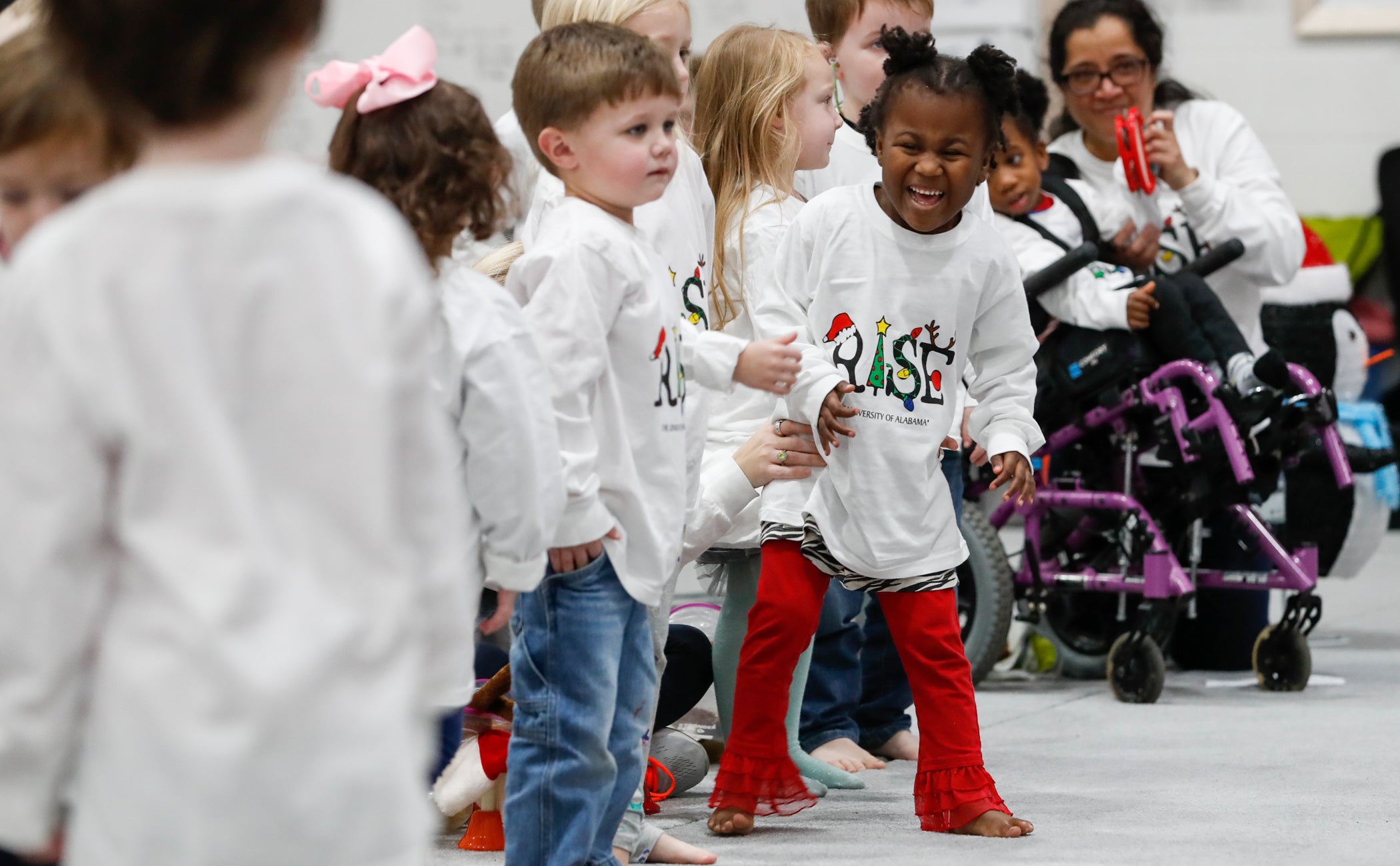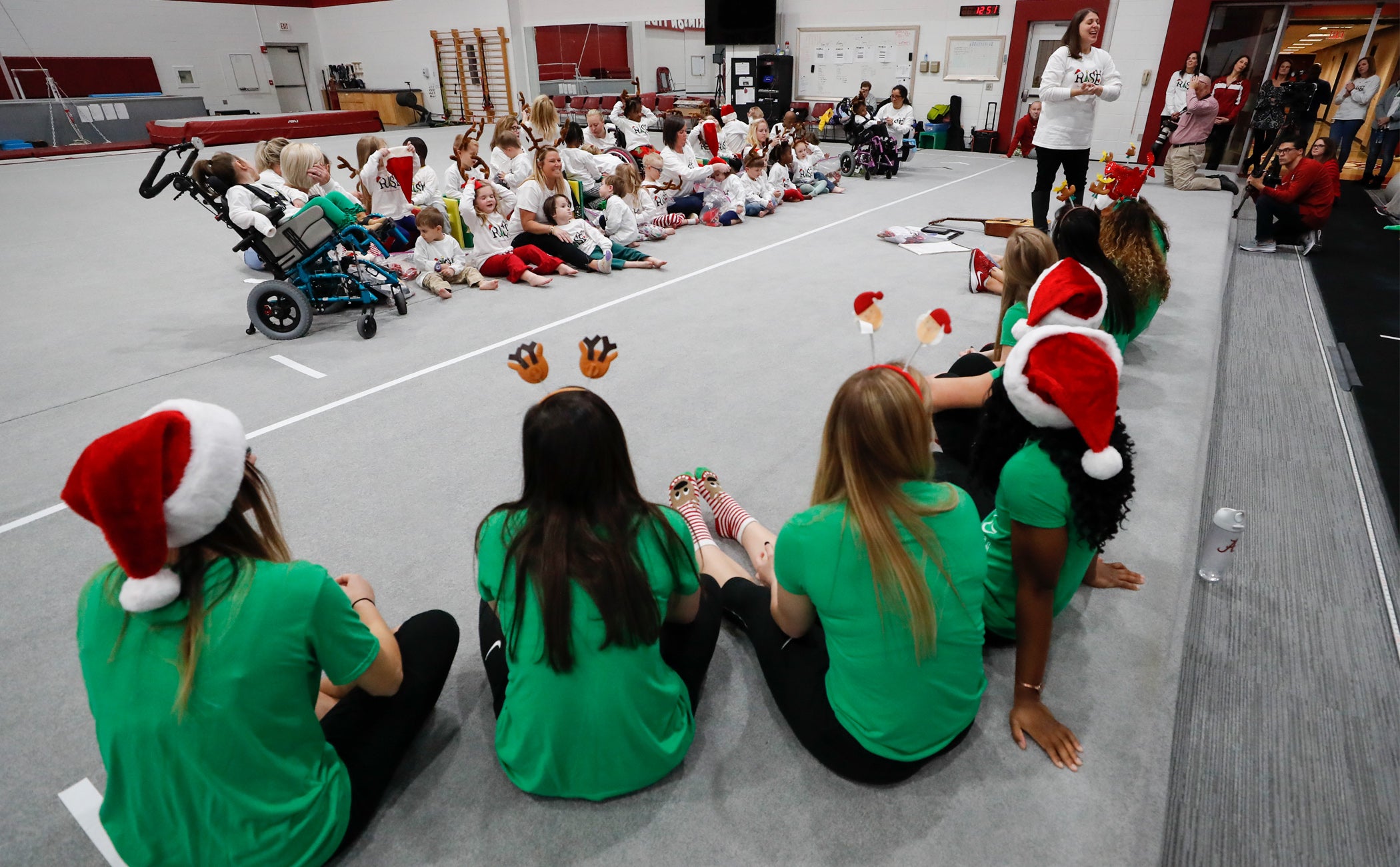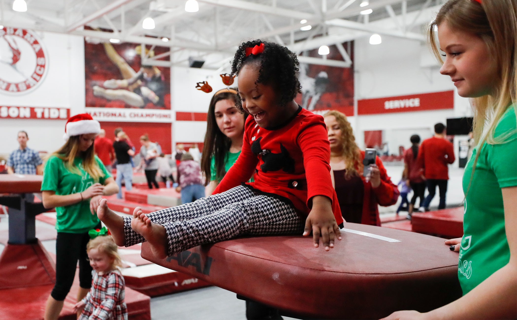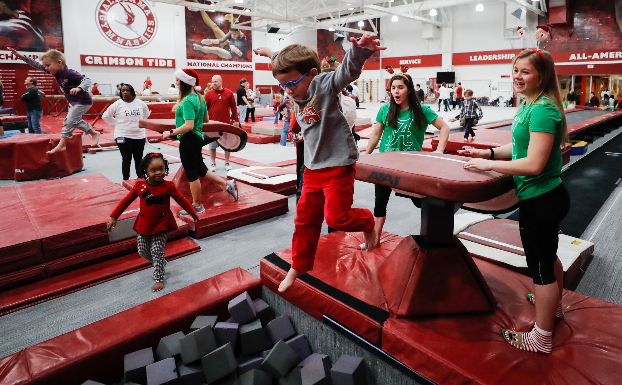 RISE Bell Choir Performs for UA Gymnastics Team December 5, 2019 Written by Bryant Welbourne 1 min read XFacebookLinkedInEmail The RISE Bell Choir performed for the UA gymnastics team to kickoff the holiday season. UA gymnasts loved the bell choir’s performance. The RISE Bell Choir always puts on a great show. It was fun for all in the gymnastics practice facility following the performance. RISE students showed off their skills for gymnastics head coach Dana Duckworth. Students loved swinging on the uneven bars. Jumping into the foam pit was a huge hit. Big Al stopped by to cheer on the RISE students.