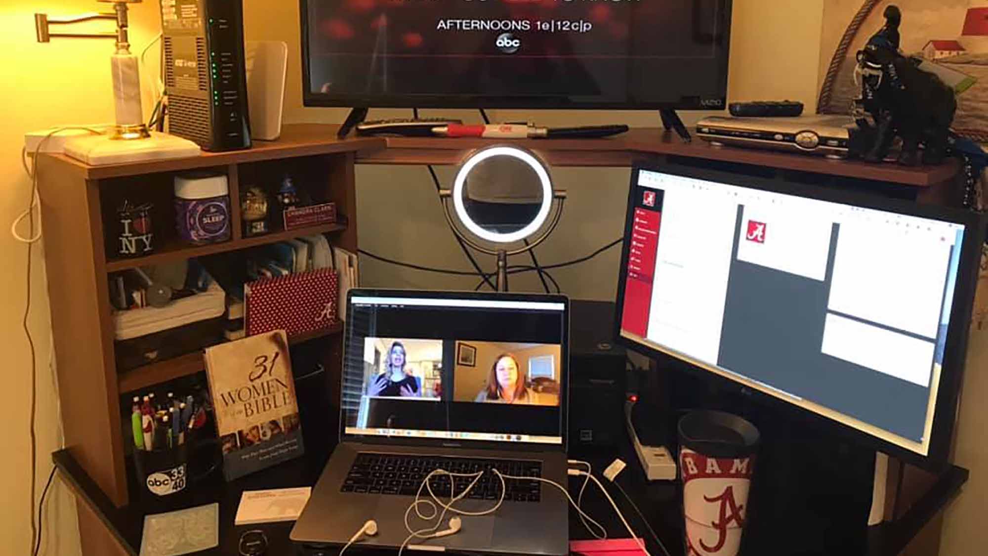 WVUA 23 Director of Sales Tabitha Bostick hooked up an old television so she “can really get after it on my budget spreadsheets.”