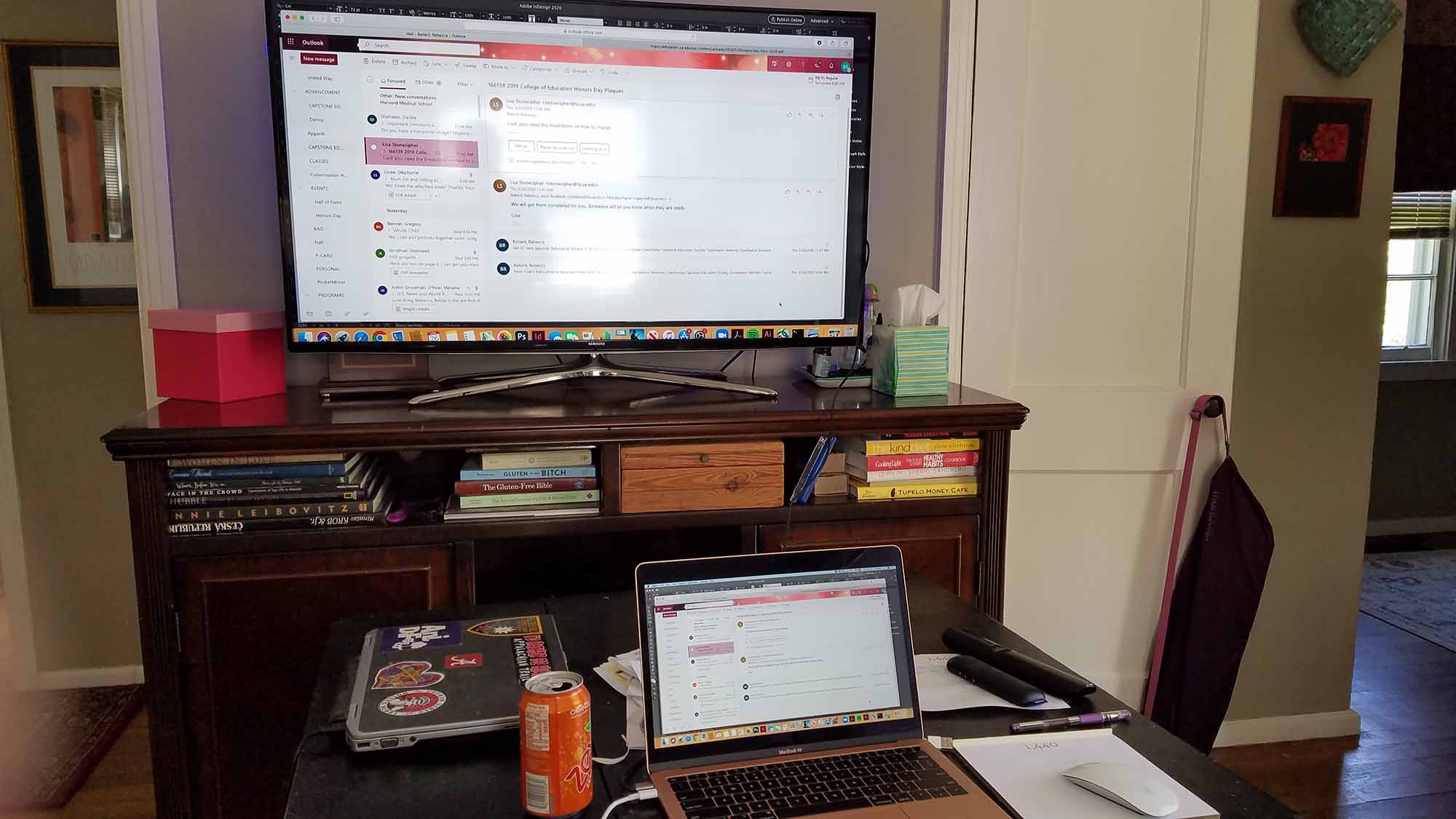 Bigger is better. Rebecca Ballard, director of college relations for the College of Education, also hooked her computer up to a television.