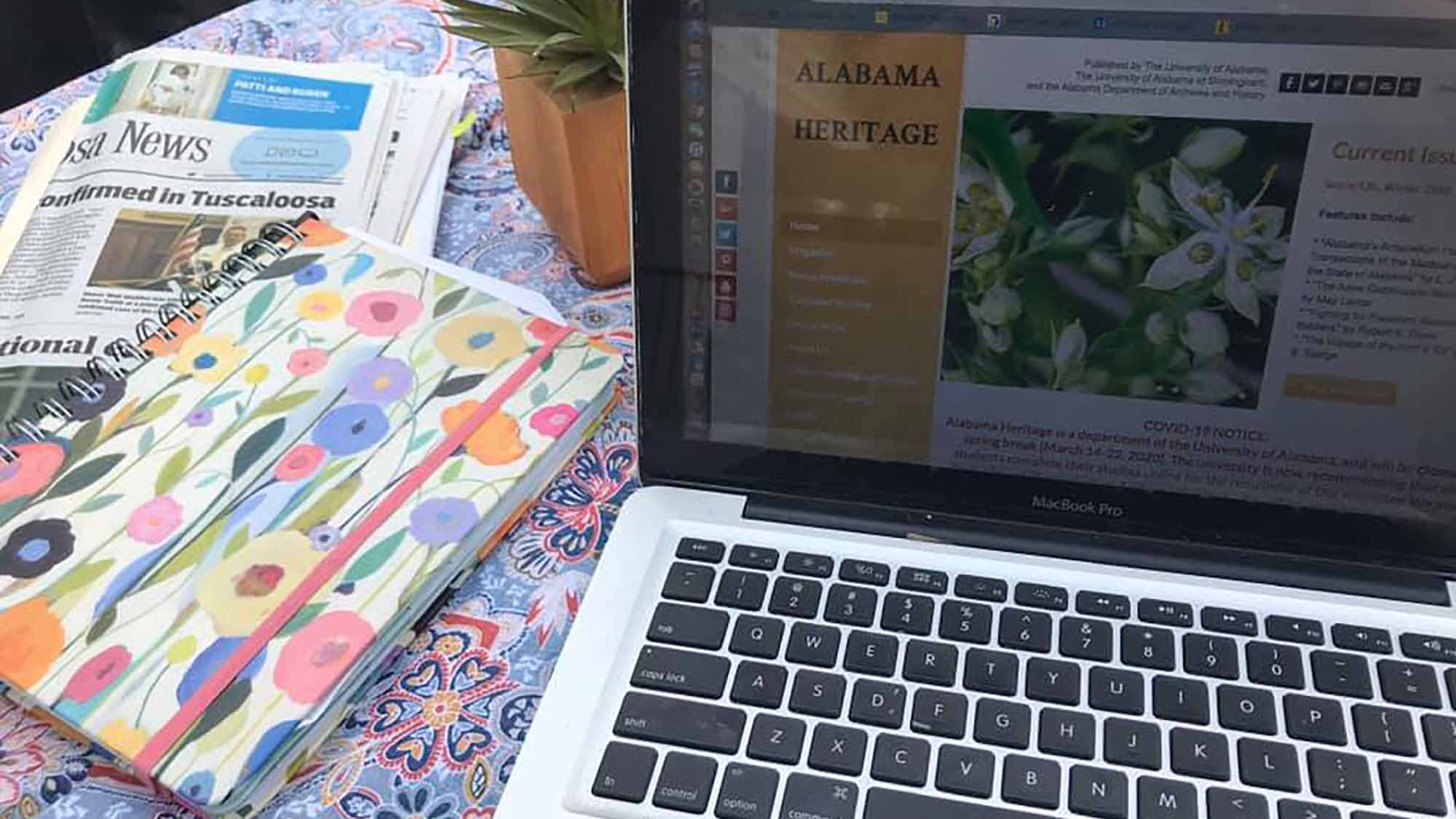 Rebecca Minder, marketing and digital media manager for Alabama Heritage, takes advantage of the nice spring weather in Tuscaloosa.
