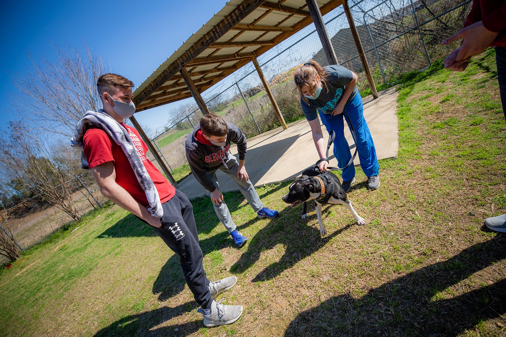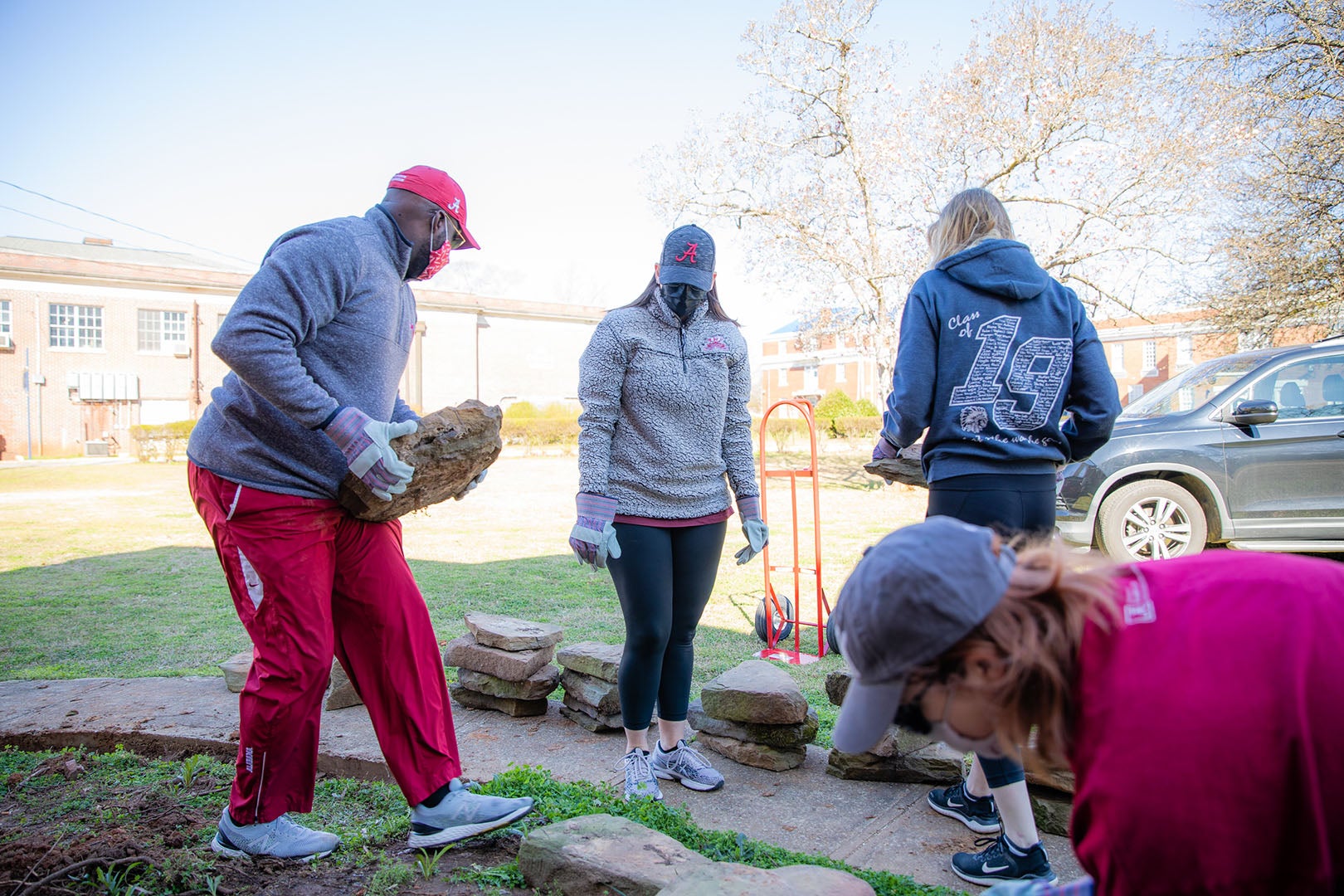 UA Students Serve the Community through Hands On Tuscaloosa March 9, 2021 Written by Melissa Parker 1 min read XFacebookLinkedInEmail This past weekend, UA students participated in Hands on Tuscaloosa, a day of service throughout the community. More than 150 student volunteers served. 14 local nonprofit agencies participated… Including One Place mobile pantry, at Monnish Park. Volunteers filled bags with food for those in need. The bi-annual day of service gives students the opportunity to get connected to the Tuscaloosa community through service. Volunteers helped with landscaping at The House Tuscaloosa. Some moved large rocks… Cleaned stairs… And painted. Students made a positive impact in just a few hours. At the Metro Animal Shelter, volunteers interacted with four-legged friends. They got to play with cute dogs… And cats, too. At Jeremiah’s Community Garden, volunteers worked hard at picking weeds… Fertilizing trees… Building new garden boxes and more. Volunteers spent their Saturday making a difference. And together, UA students contributed over 470 hours of direct service to the community.