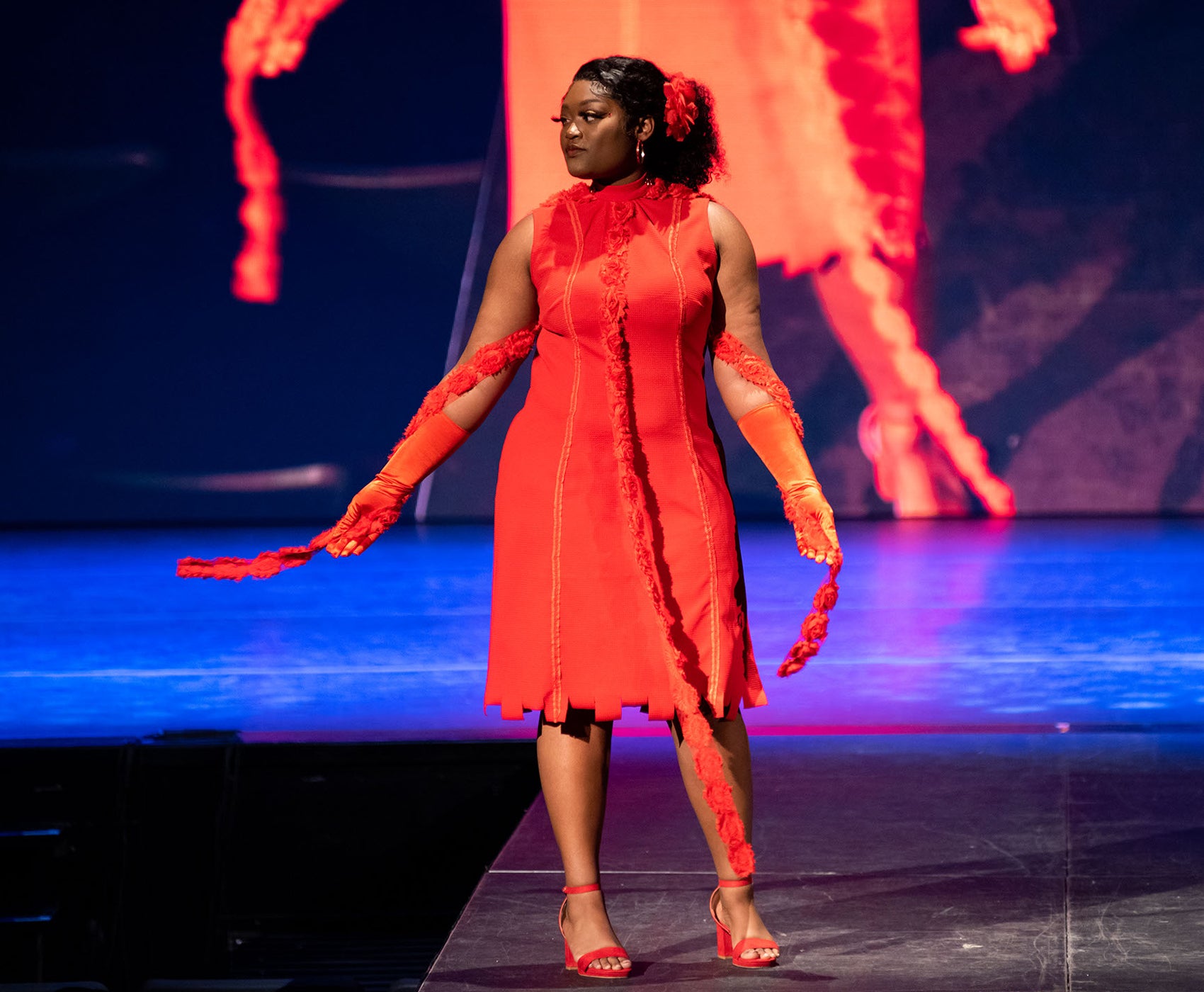 Fashion for Life is the culmination of a capstone experience that students start preparing for before their senior year. After researching, planning and buying fabrics over the summer, students begin constructing garments for their collection when school starts in the fall. Students are able to apply all of the technical and creative skillsets they have learned in the apparel design program into this course.