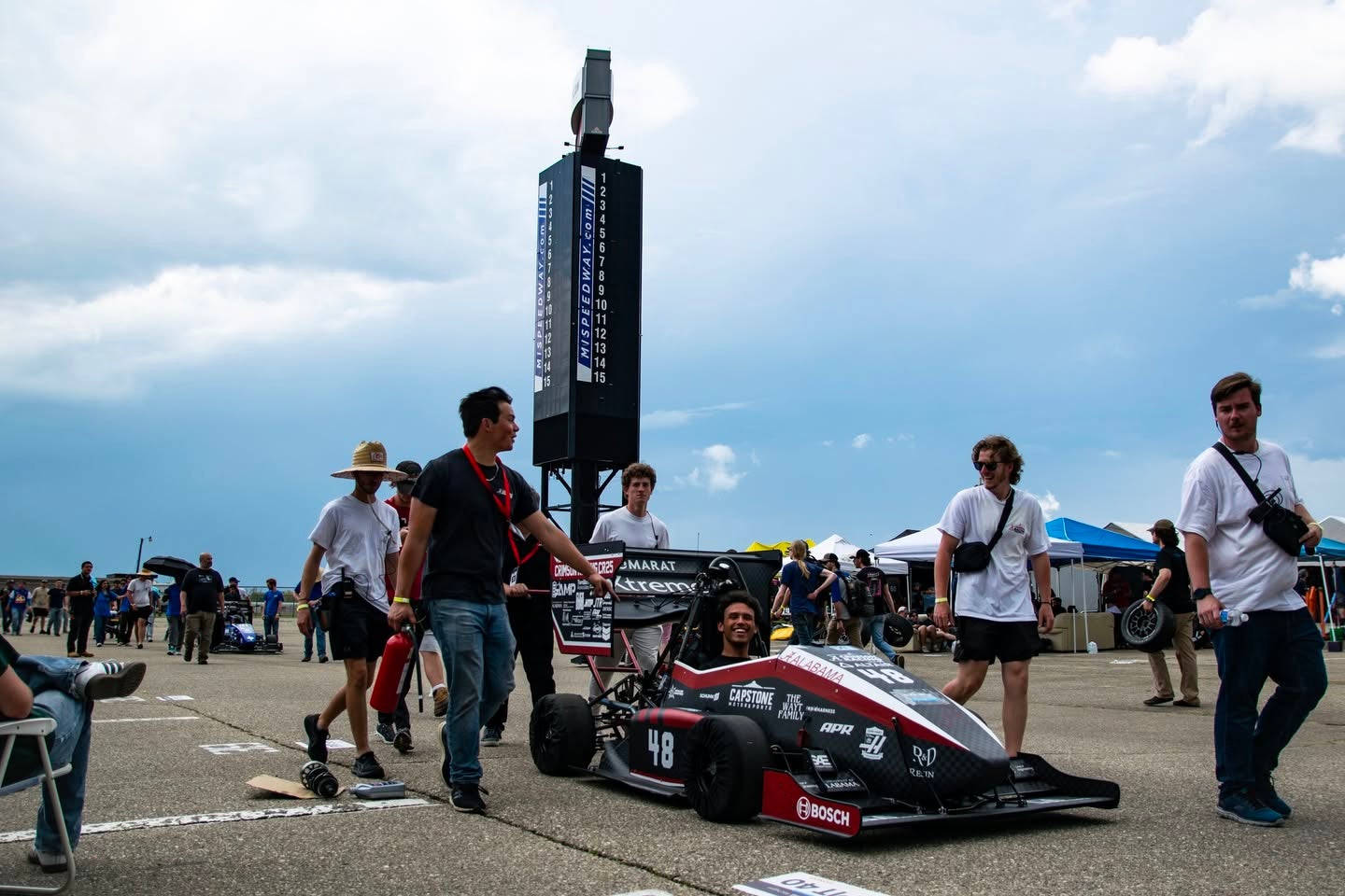 Each May, Crimson Racing competes at the Formula SAE competition in Michigan, an international event where more than 120 university teams showcase their student-built race cars.