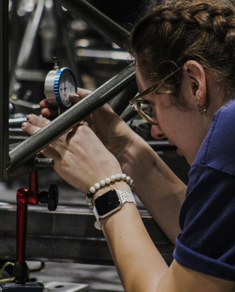 Each summer, the team ramps up for the manufacturing season. Students coordinate schedules, tooling access and deadlines while working out of Hardaway Hall, which houses welding stations, a composites lab and CNC machining equipment.